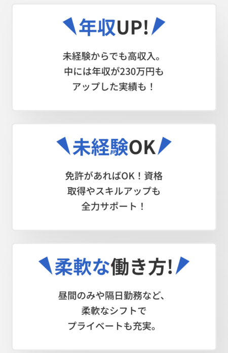 こうした不安に対して、未経験歓迎や研修制度が整った求人を探しやすいのは大きなメリットです。自力で探すよりも、選択肢を絞りやすくなります。