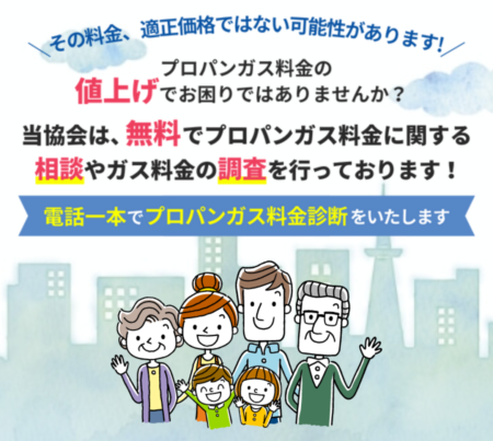 プロパンガス料金適正化協会は、今のガス料金が適正かどうかを無料でチェックでき、必要に応じて優良ガス会社の紹介まで受けられるサービスです。